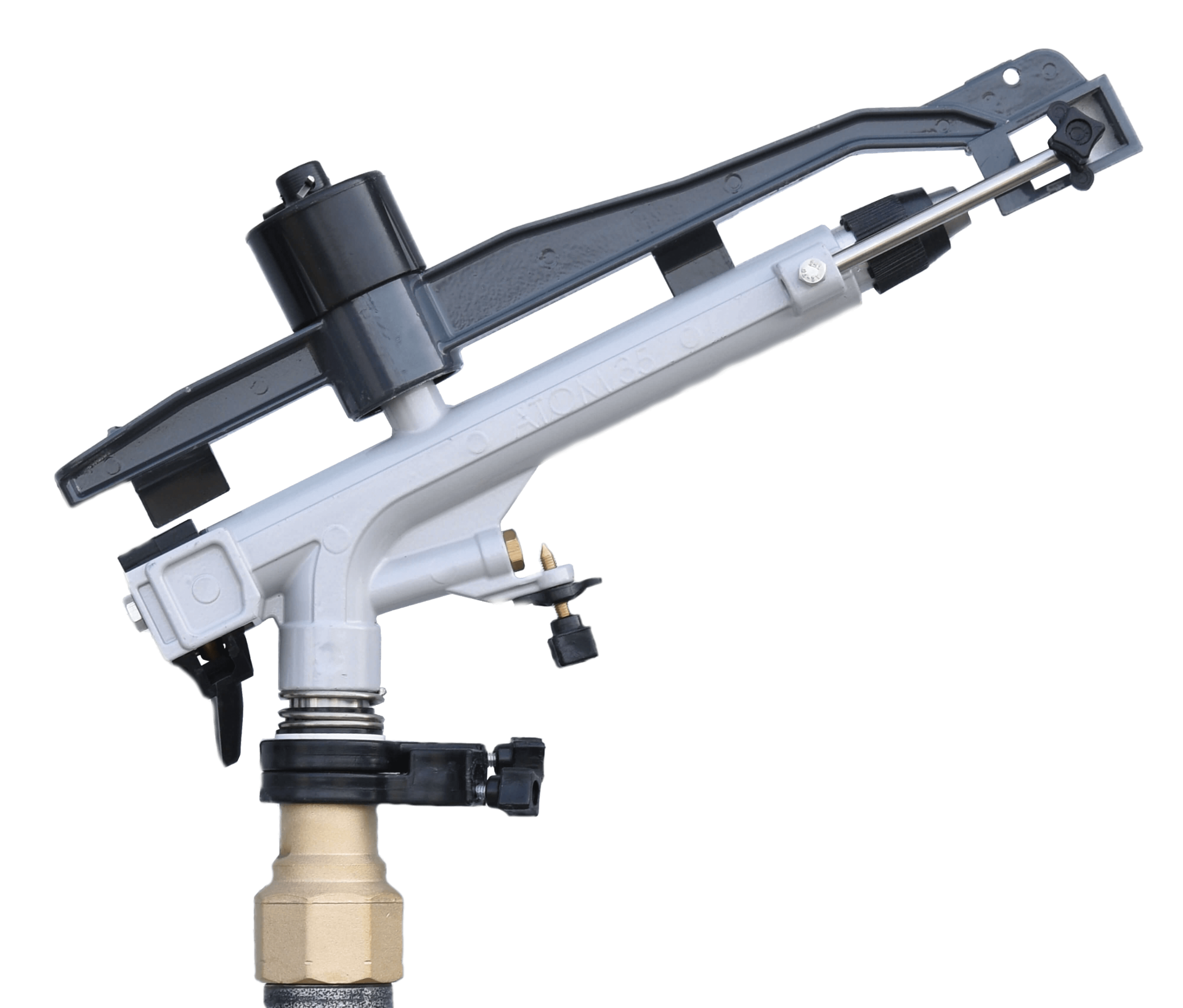 Hocheffizienter Sprinkler, der sich im Vollkreis oder im Bereich der Winkeleinstellungen dreht, die Sie bei Bedarf vornehmen, mittlerer und hoher Druck (2,0 - 7 bar) und mit Getriebe ausgestattet.